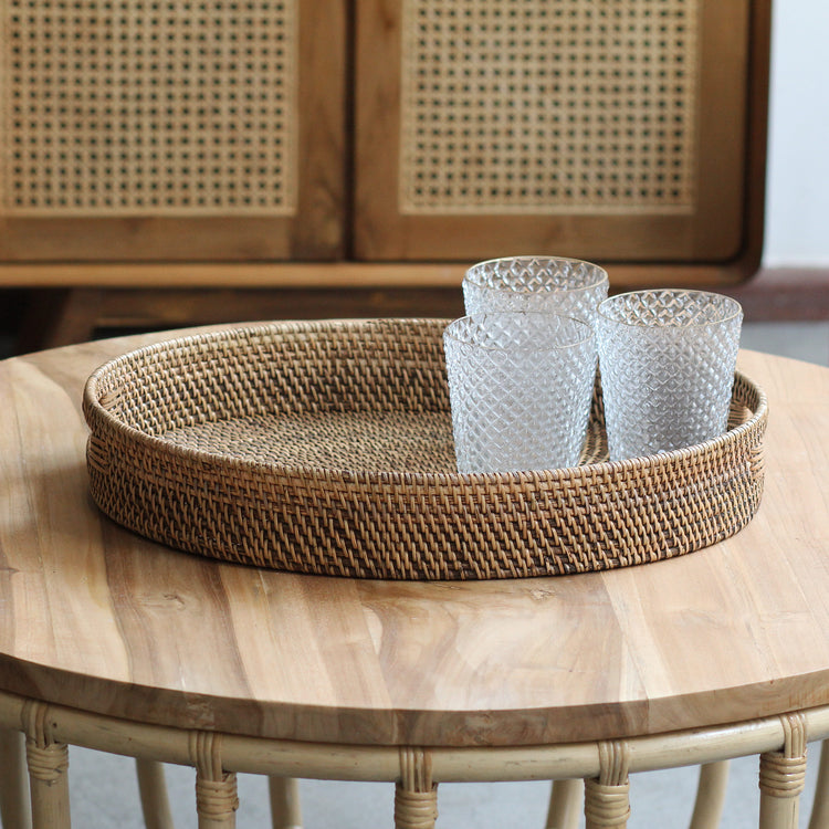 Bandeja oval Tejur em rattan com alça, feita à mão na Indonésia.