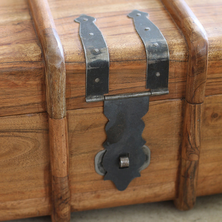O baú Maharaj é produzido na região do Rajastão | Índia. Ele conta com uma construção sólida rica em detalhes de marcenaria feita com a nobre madeira acácia maciça e conta com puxadores e dobradiças em metal envelhecido.