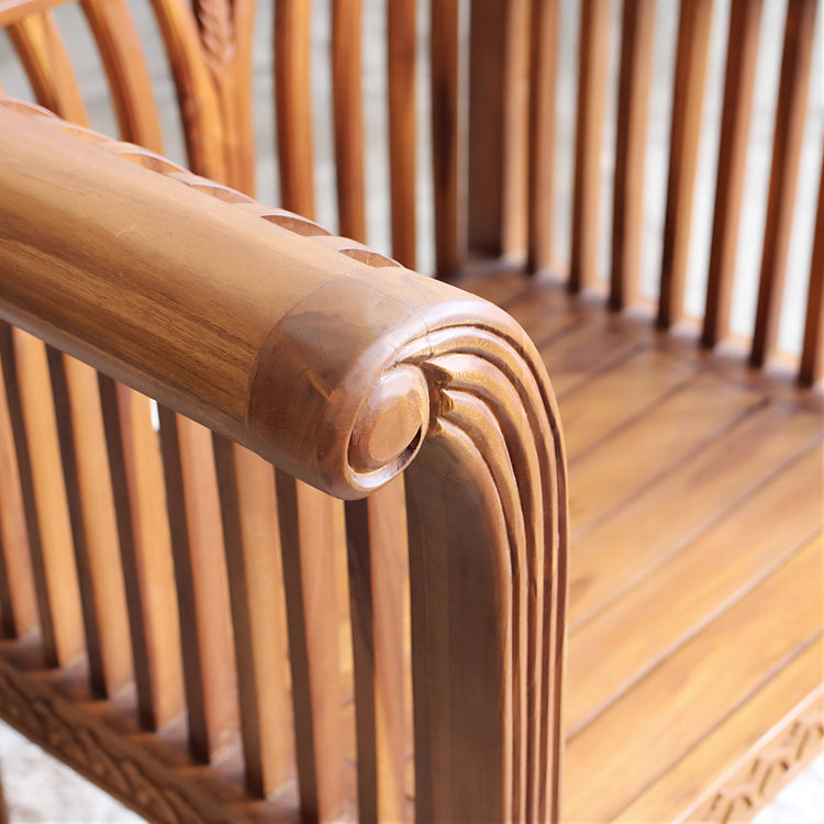 Um clássico da marcenaria Indonesiana, a Poltrona Laguna tem em seu desenho uma mistura de estilos, resultado da colonização Holandesa que influenciou artesãos locais a fabricarem móveis europeus tradicionais com uma “releitura” local no trabalho de “carvings” ou entalhes.