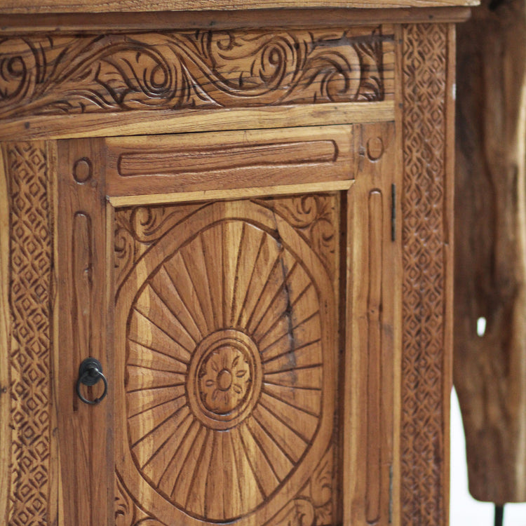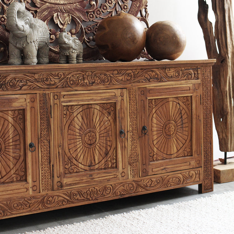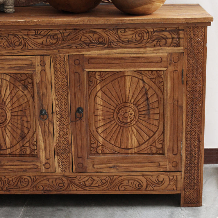Buffet Andri, feito em madeira teca e detalhes talhados à mão.