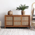 Buffet Kebaikan em madeira Teca selecionada e muita palhinha, com portas de correr, proporções generosas e estantes internas para organizar o seu espaço com muito estilo.