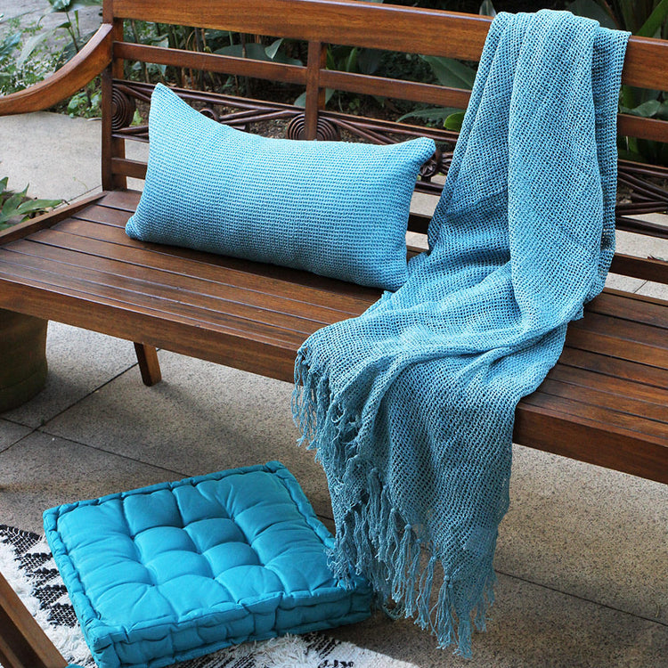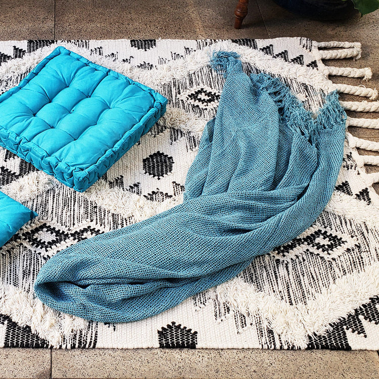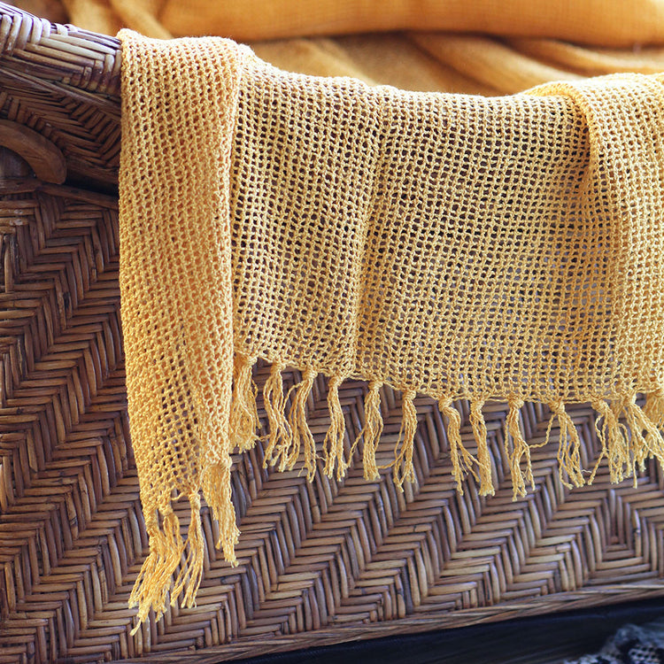 Produzida em tela crochê com tecido mescla de viscose e algodão, gostosa de tocar. Muito versátil, fica ótima sob sofás, poltronas ou espreguiçadeiras e também pode ser usada como colcha para cama de solteiro.