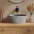 A Cuba Vessel produzida em pedra natural dos rios Indonésios, cada peça tem sua individualidade em formatos e curvas com textura bruta em pedra por fora e polida por dentro.