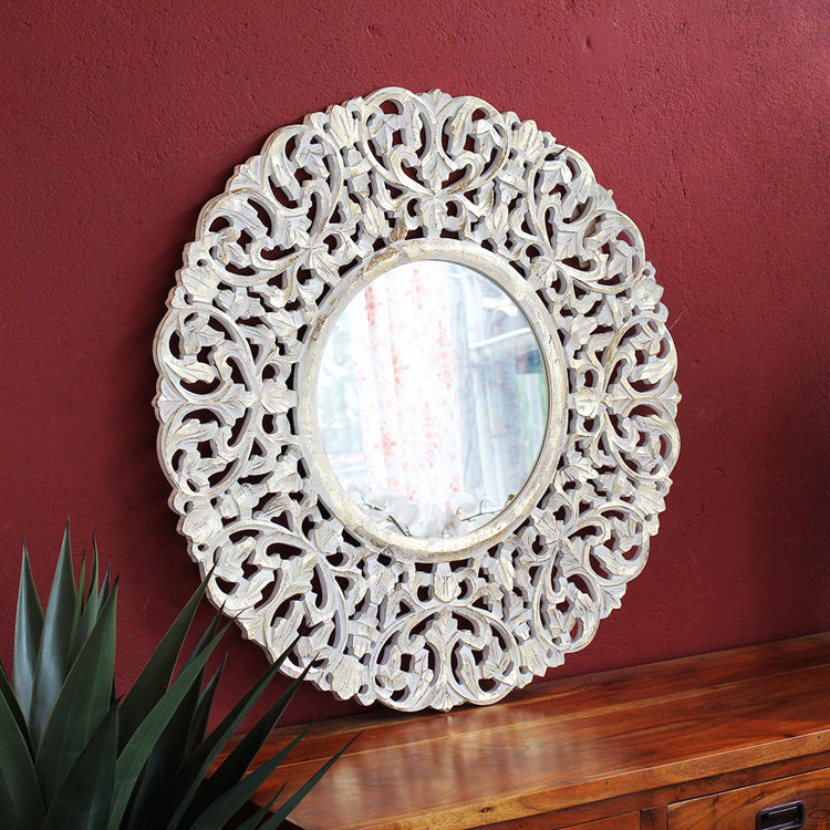 Entalhes feitos a mão por artesãos no norte da Índia.