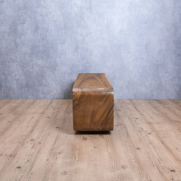 O Rack em madeira maciça, com linhas simples, conversa bem com qualquer estilo de decoração, abrindo espaço para diferentes composições no ambiente.