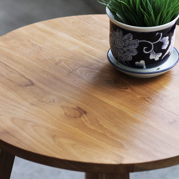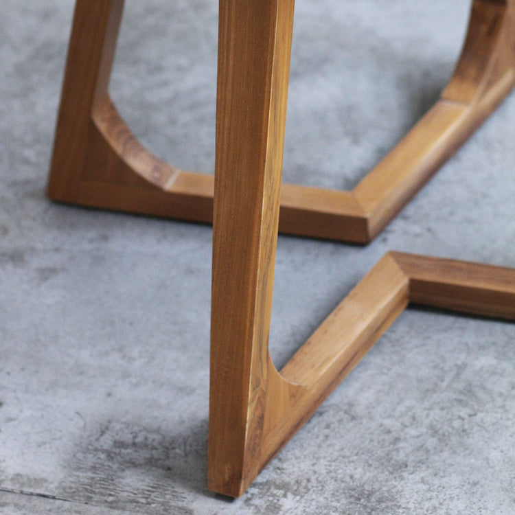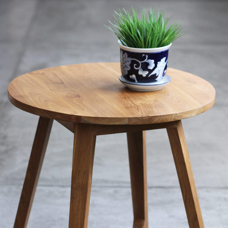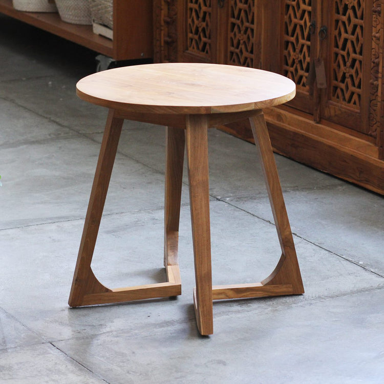 A Mesa Lateral Doha Redonda tem construção em madeira teca maciça.