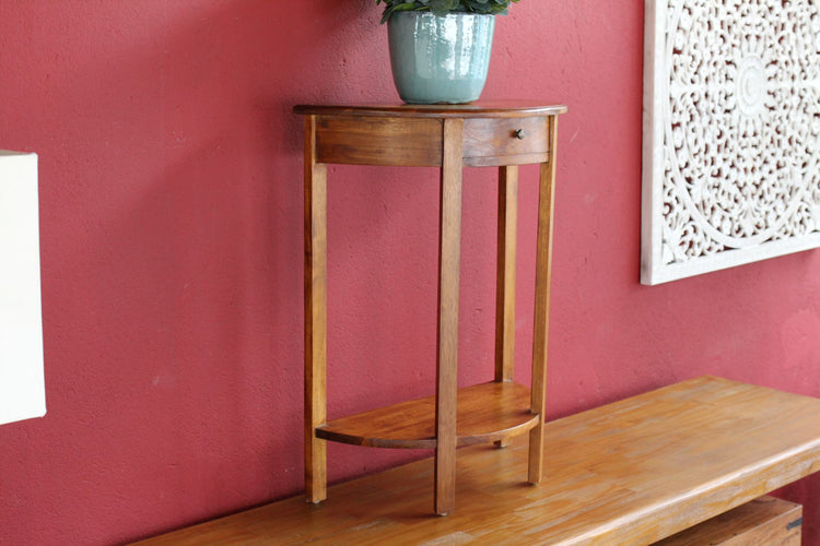 Mesinha Lateral Half Moon em madeira teca.