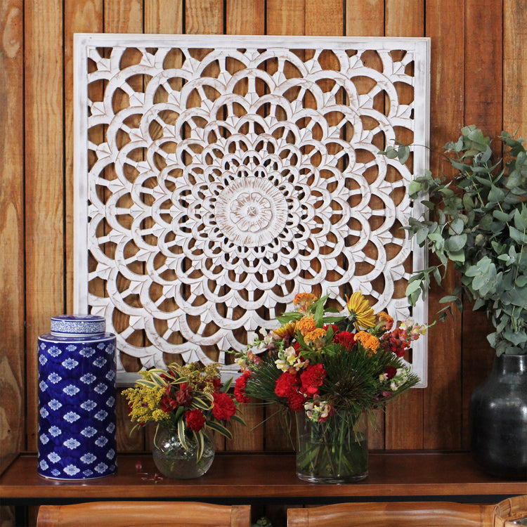 PaInel Decorativo Dekoratif, com entalhes feitos a mão por artesãos no norte da Índia.