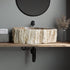 A Cuba Ishan é produzida em madeira fossilizada, uma pedras rara e especial, cada cuba tem sua identidade e individualidade em formatos e curvas. Graças ao acabamento polido é possível ver em seu interior detalhes da madeira. O exterior ressalta a rusticidade elegante da própria pedra com sua textura original.