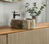 A Cuba Lavanya é produzida em madeira fossilizada, uma pedras rara e especial, cada cuba tem sua identidade e individualidade em formatos e curvas. Graças ao acabamento polido é possível ver em seu interior detalhes da madeira. O exterior ressalta a rusticidade elegante da própria pedra com sua textura original.