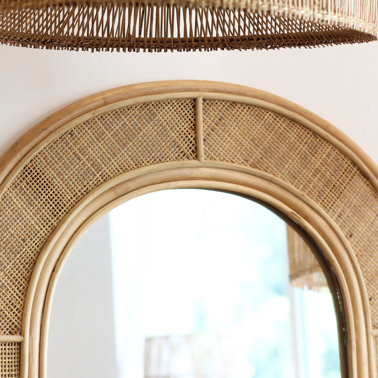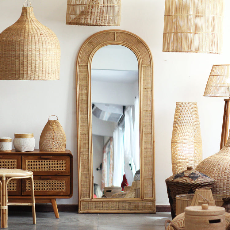 O espelho Sevilha é uma peça que combina beleza natural na decoração com muita funcionalidade. Feito à mão na Indonésia, ele conta com borda artesanalmente trabalhada em ratam e fibras naturais, este espelho alto em arco é um must em halls, corredores, quartos e salas de estar.