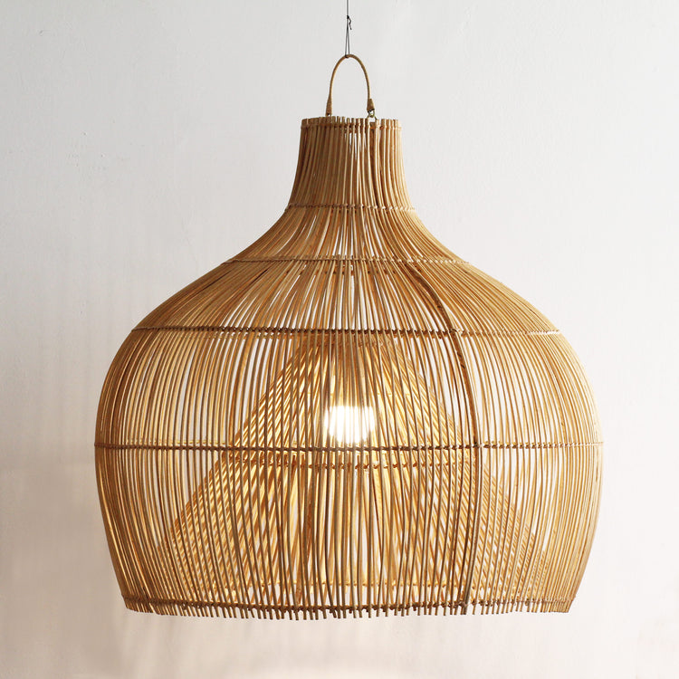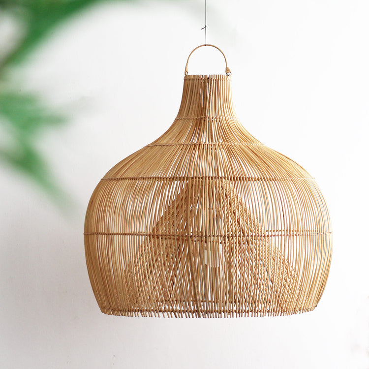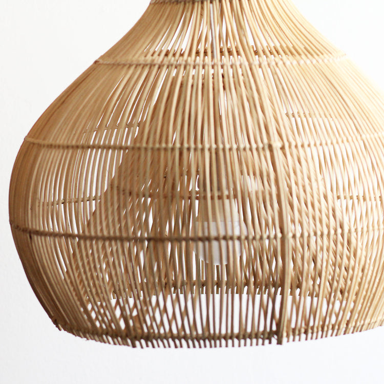 Luminária Pendente Kusuma em Rattan, fabricada artesanalmente em Rattan.