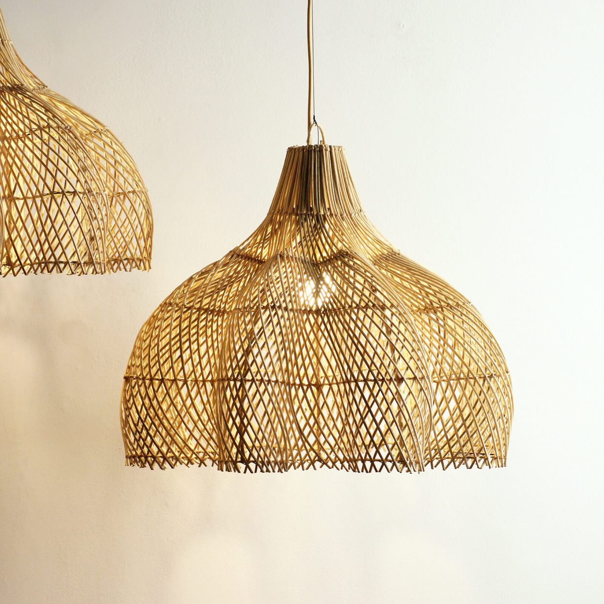 Luminária Pendente Mawar. Produzidas artesanalmente na ilha de Bali em rattan.