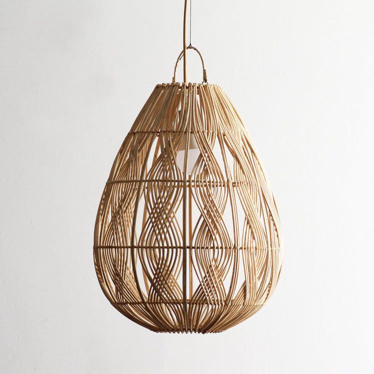 Luminária Pendente Bhalin, produzida artesanalmente na ilha de Bali, em bambu e Rattan.