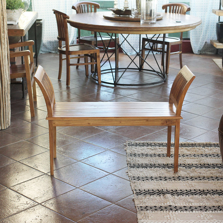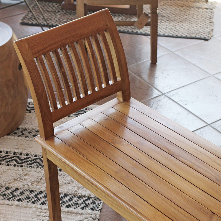 Construído em madeira teca maciça de forma artesanal na ilha de Java, Indonésia.