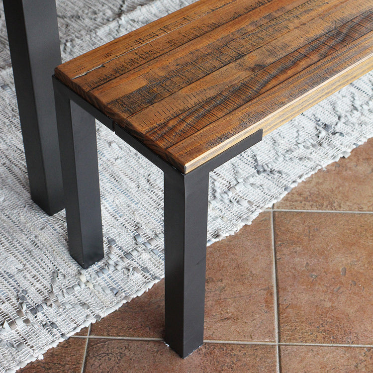 Banco Ventura, pés em aço carbono com pintura automotiva e tampo em madeira maciça.