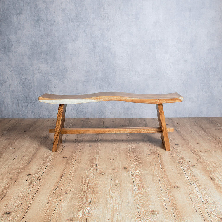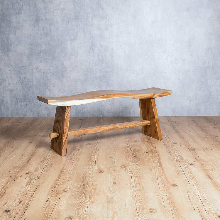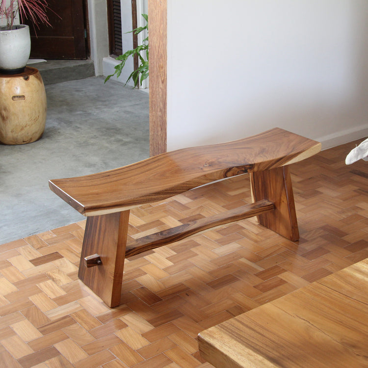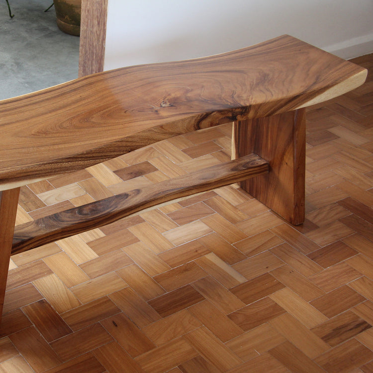 Banco Wave dois lugares feito em madeira de tamarindo maciça.