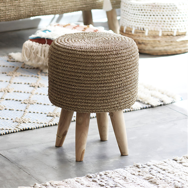 Banquinho Bukit em assento de fibra natural e trançada artesanalmente. Feita em Java | Indonésia