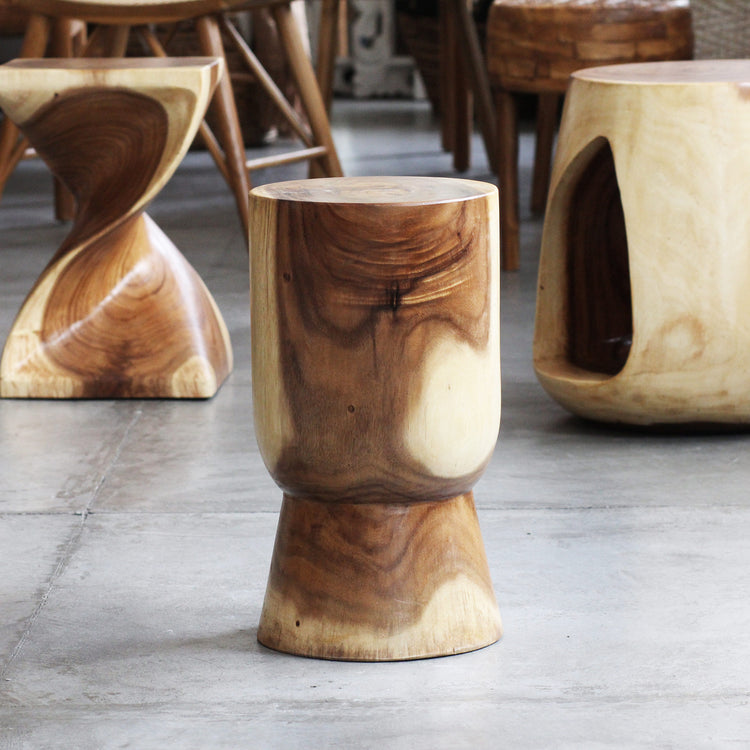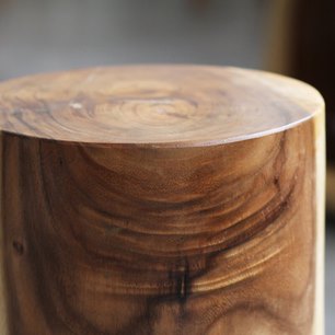 O Puff Tamarindo Pilão é feito a partir de uma peça bruta do tronco da árvore, o que o confere um look orgânico e rústico de madeira maciça.