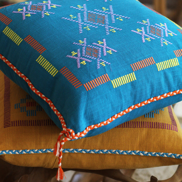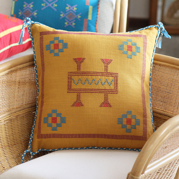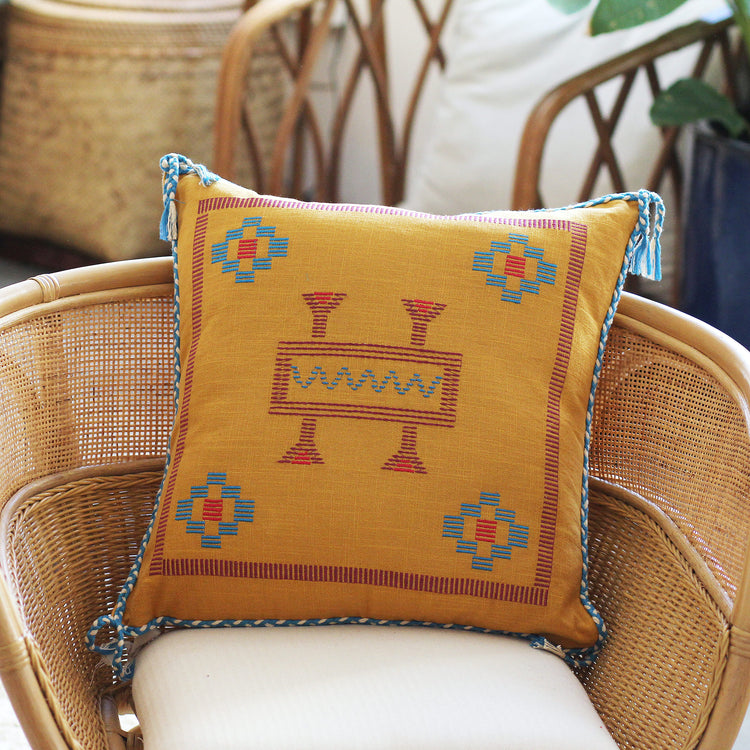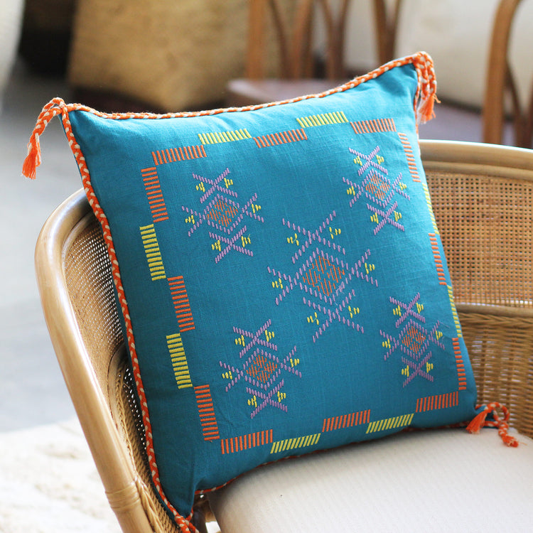 Com motivos étnicos, rica em cores e detalhes, a capa de almofada Azteca é confeccionado de forma artesanal em tear manual com 100% Algodão.