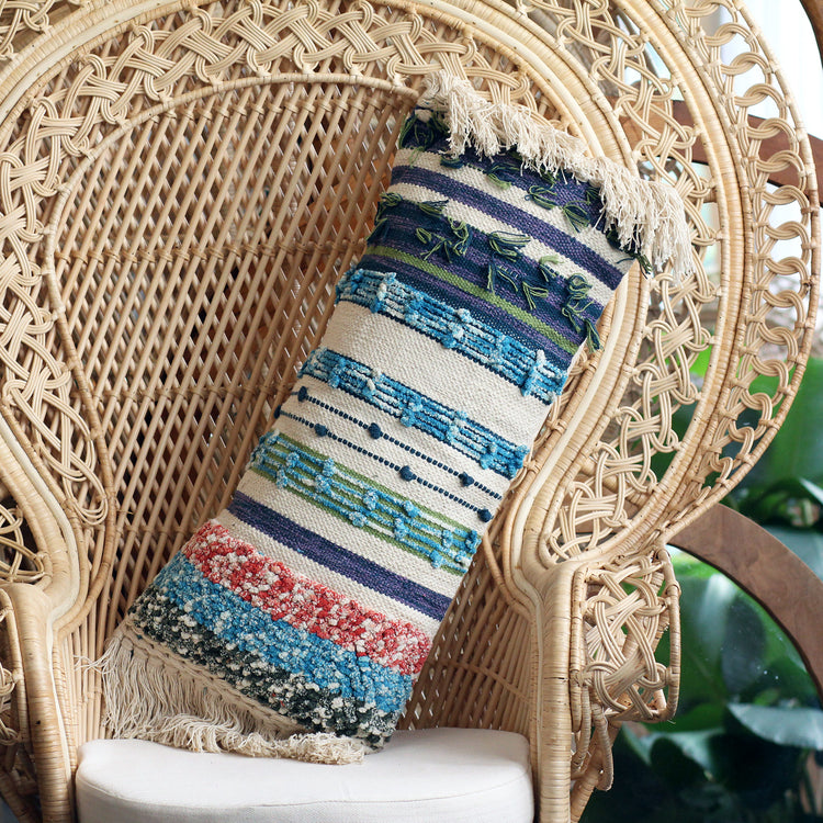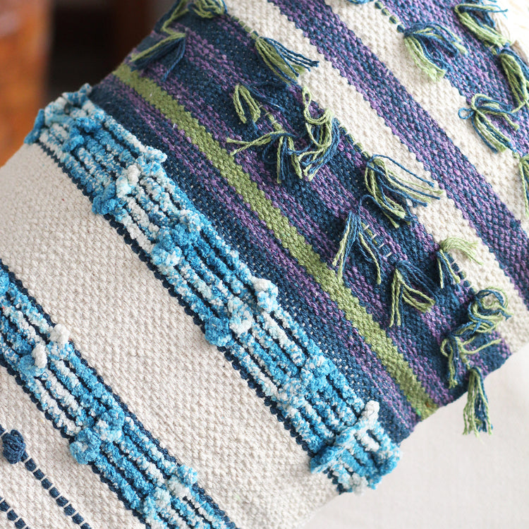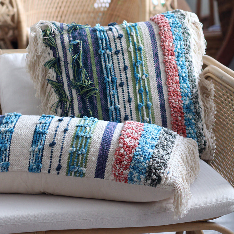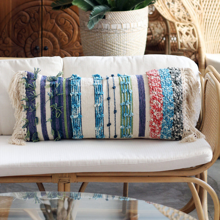 Capa de Almofada Blues Retangular produzida com uma mescla de 80% algodão e 20% lã com padronagens complexas de entrelaçamento, com toque, brilho e contraste superior.