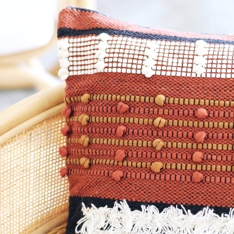 Capa de Almofada Gaya produzida com uma mescla de 80% algodão e 20% viscose com padronagens complexas de entrelaçamento, com toque, brilho e contraste superior.