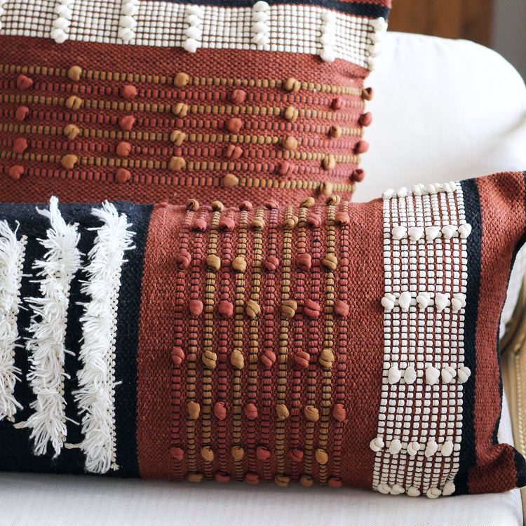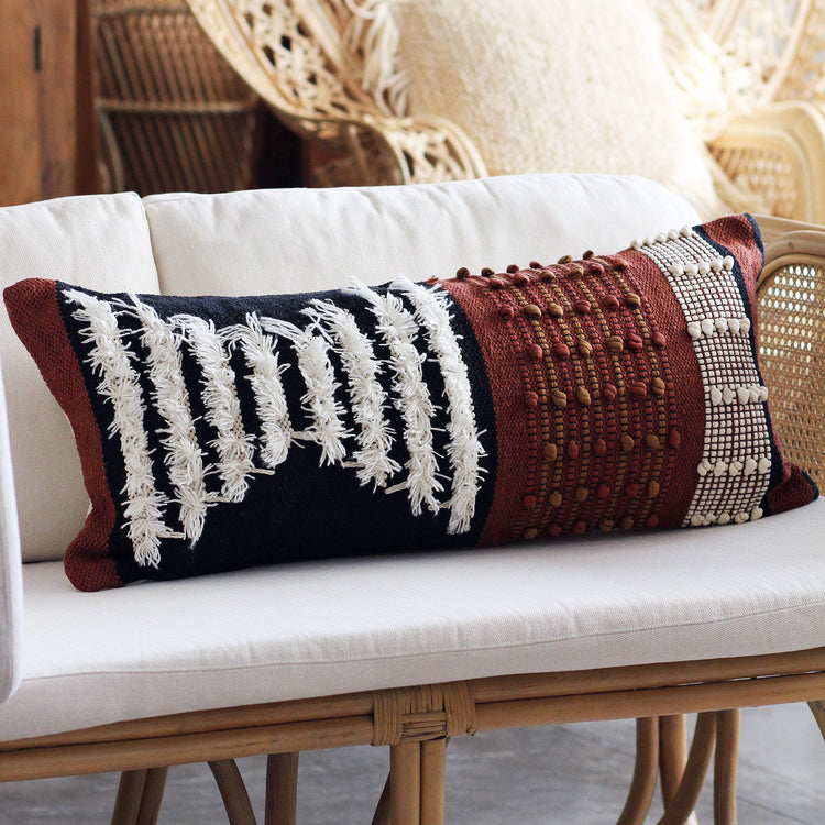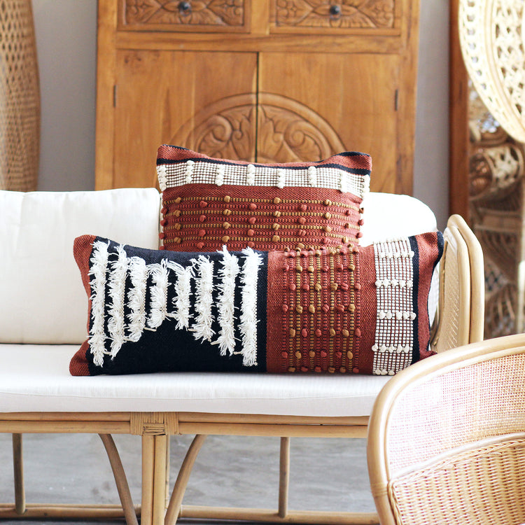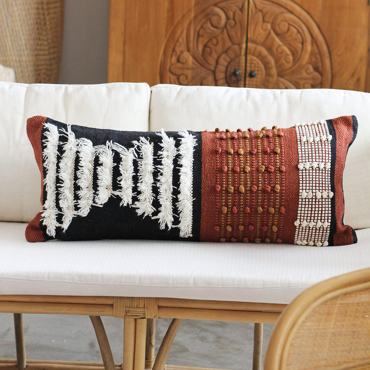 Capa de Almofada Gaya Retangular produzida com uma mescla de 80% algodão e 20% viscose com padronagens complexas de entrelaçamento, com toque, brilho e contraste superior.