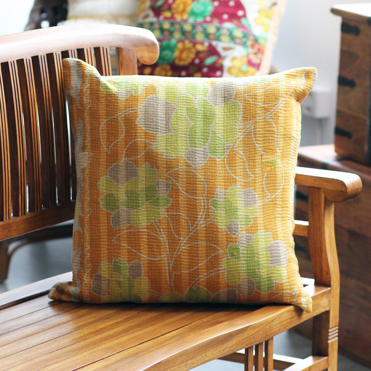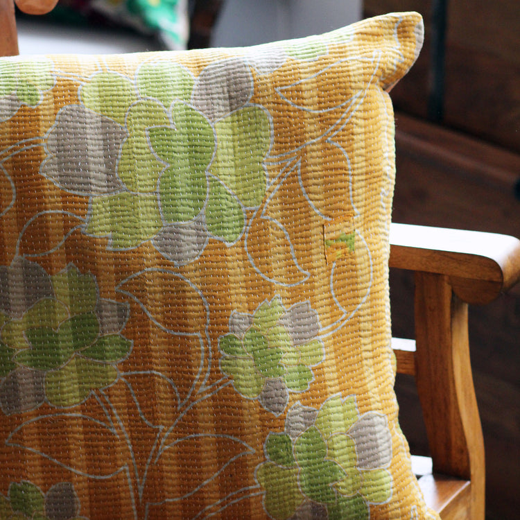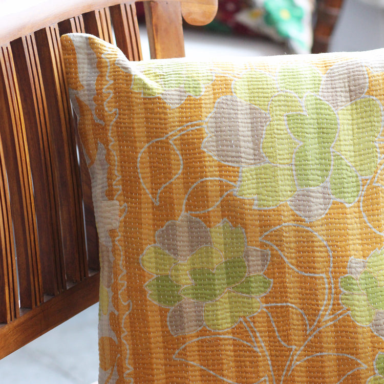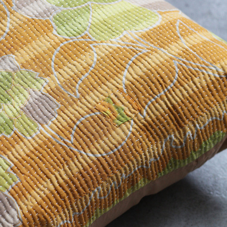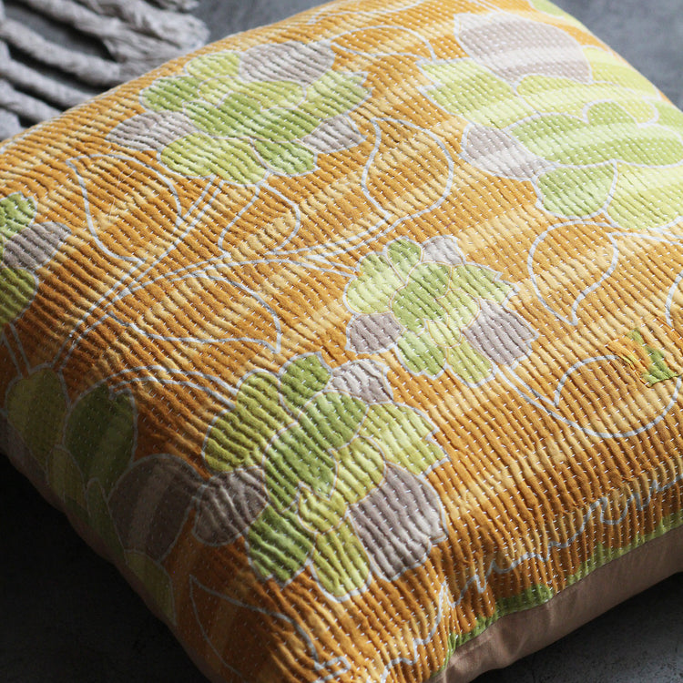 A Capa de Almofada Hari Aangan traz a rica tradição artesanal do Rajastão Indiano em cada detalhe. Ela se destaca pela textura em pespontos que percorrem toda a superfície criadas com a técnica de bordado kantha.
