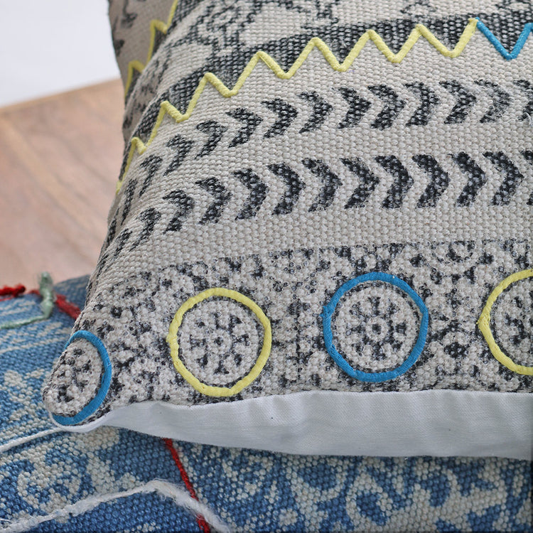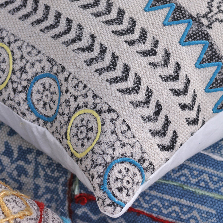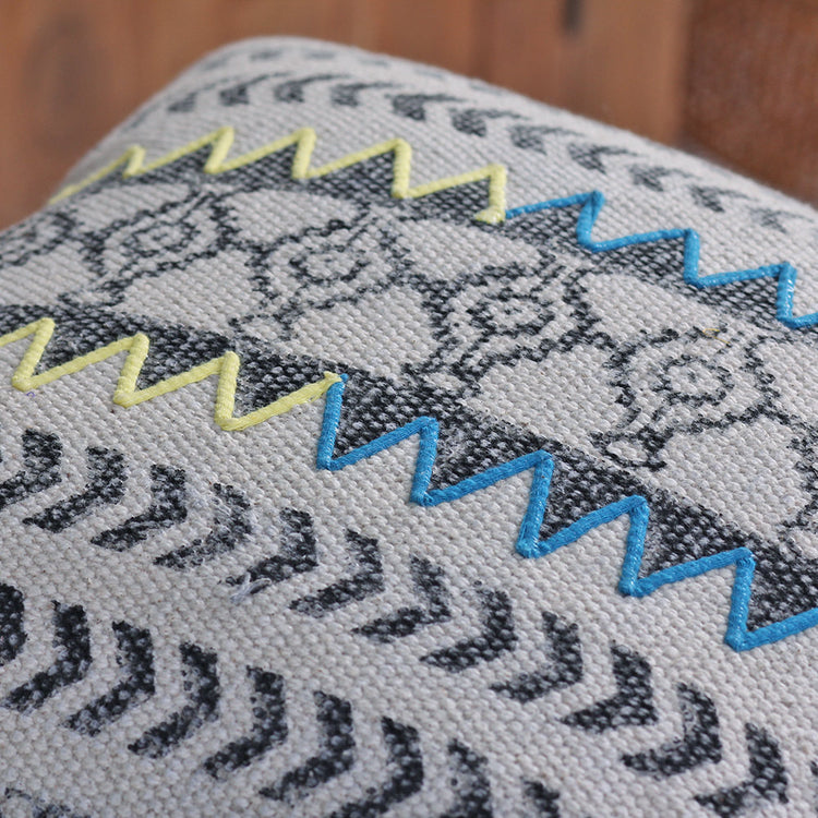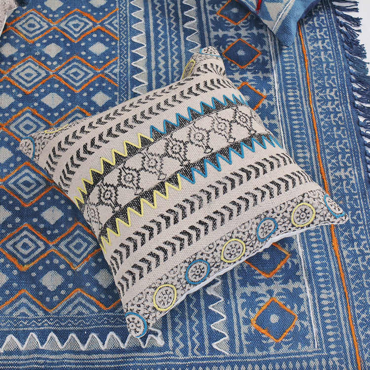 Produzida em algodão extra lonado, a Capa de Almofada Jasmeet tem motivos étnicos e apliques em seda reciclada. Linda : ), ela vem da Índia.