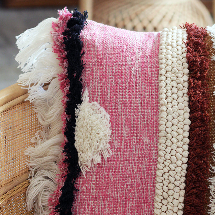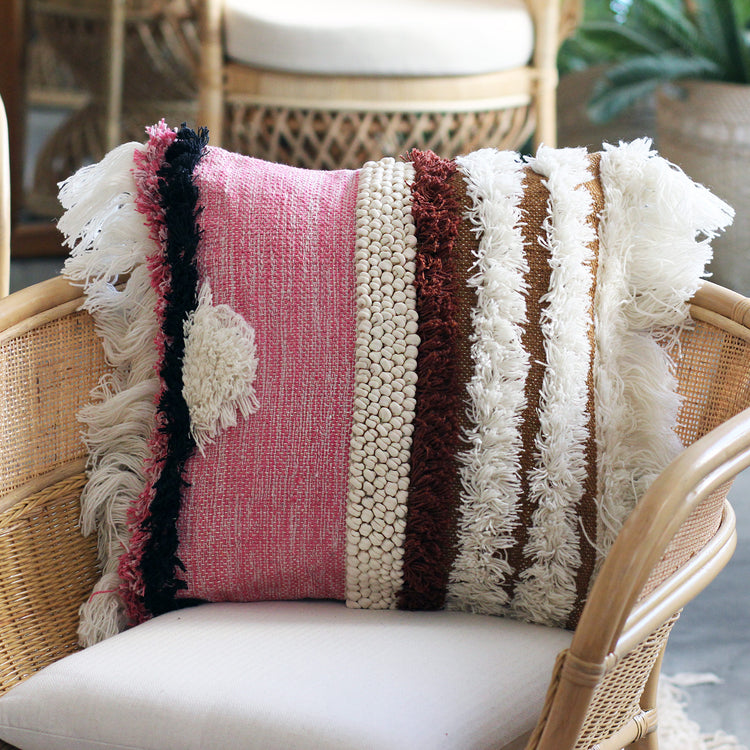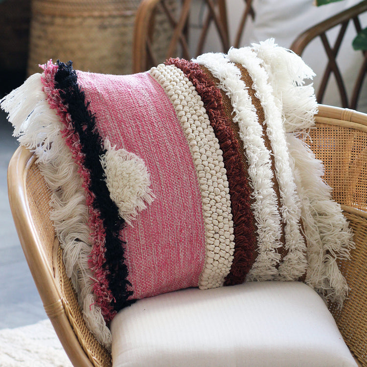 Capa de Almofada Lena produzida com uma mescla de 80% algodão e 20% lã com padronagens complexas de entrelaçamento, com toque, brilho e contraste superior.