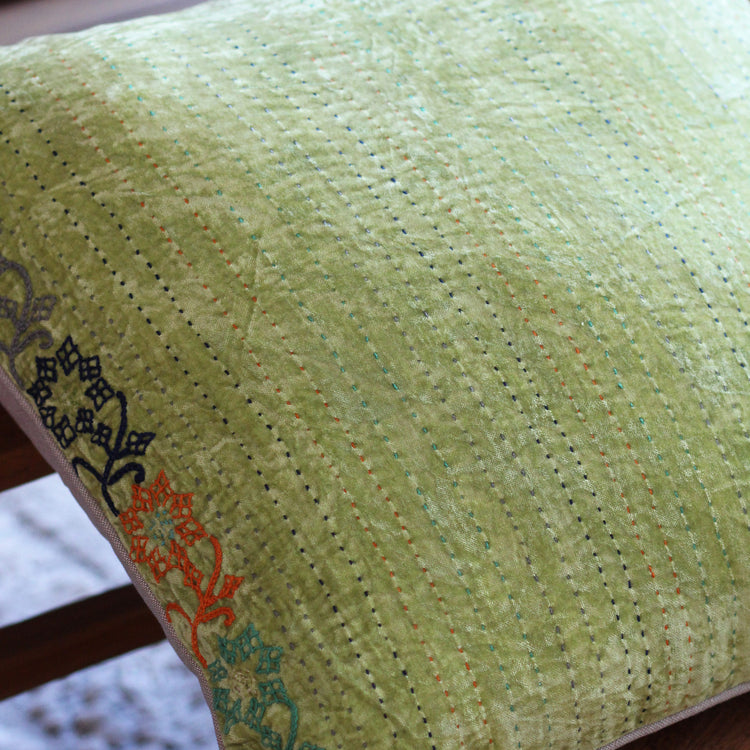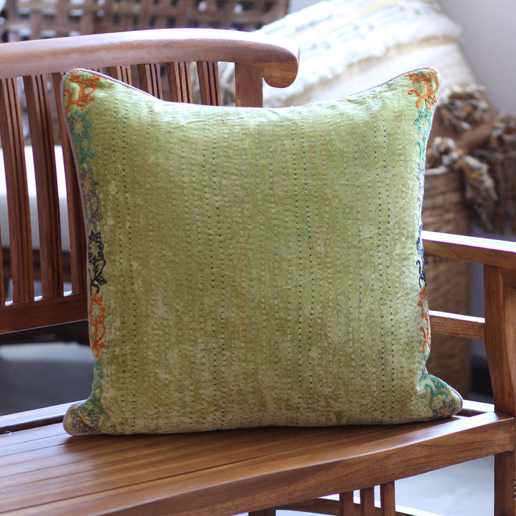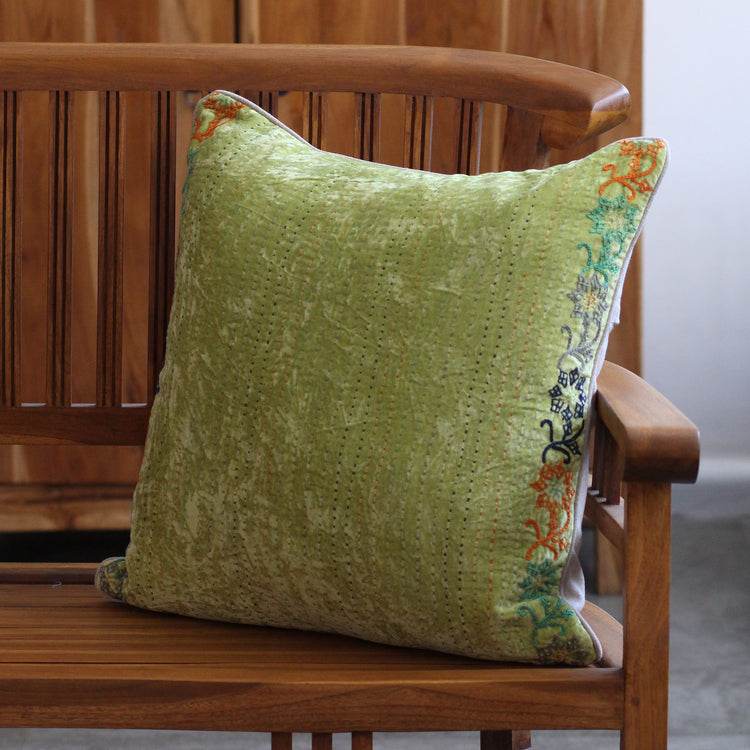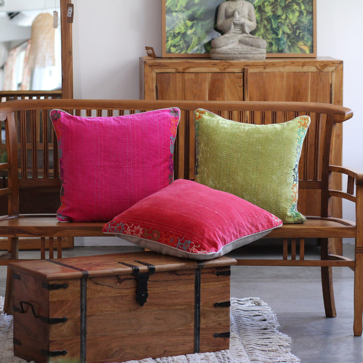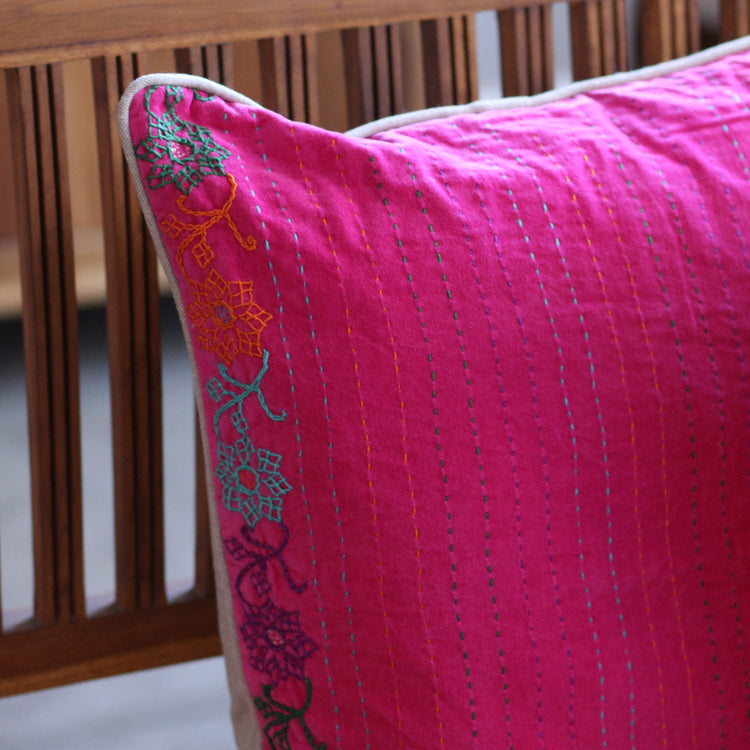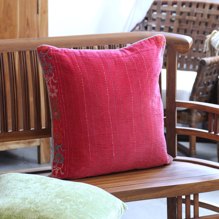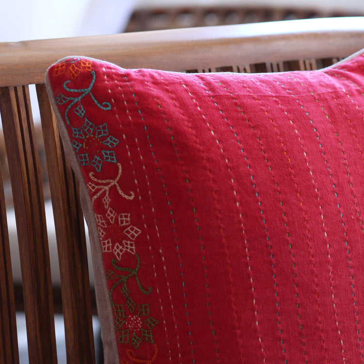 Feita no Rajastão em 100% algodão, a Capa de Almofada Makha apresenta bordados manuais sutis com linhas delicadas sobre um fundo vibrante que traz cor e charme ao ambiente. Inspirada no artesanato tradicional da região.