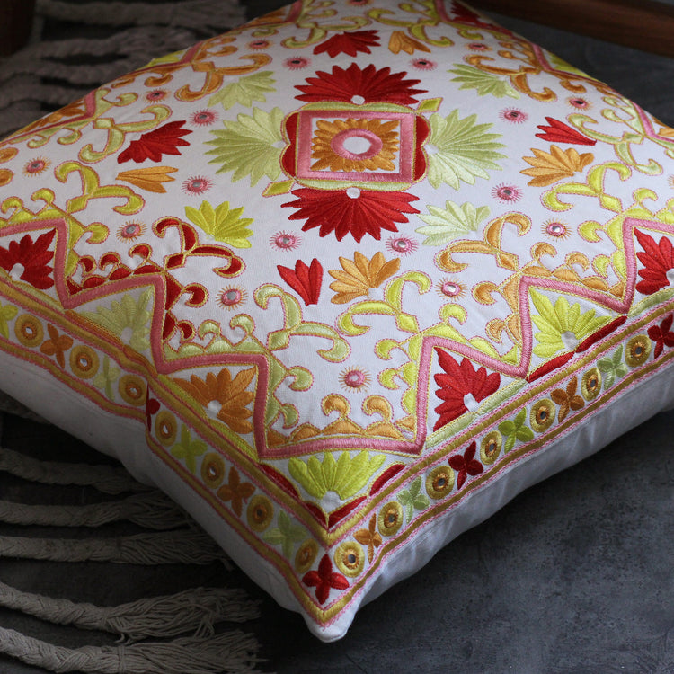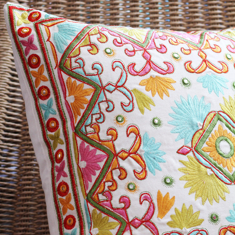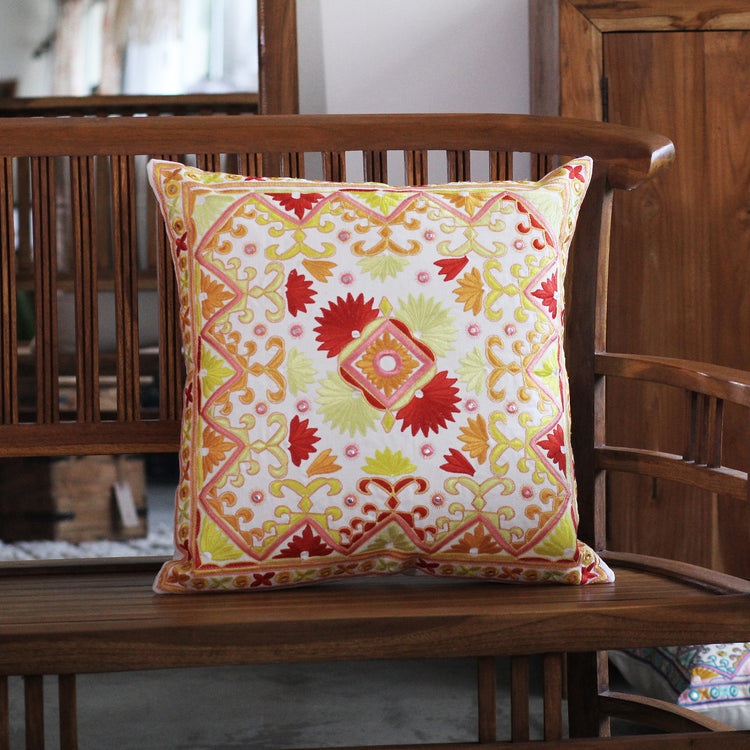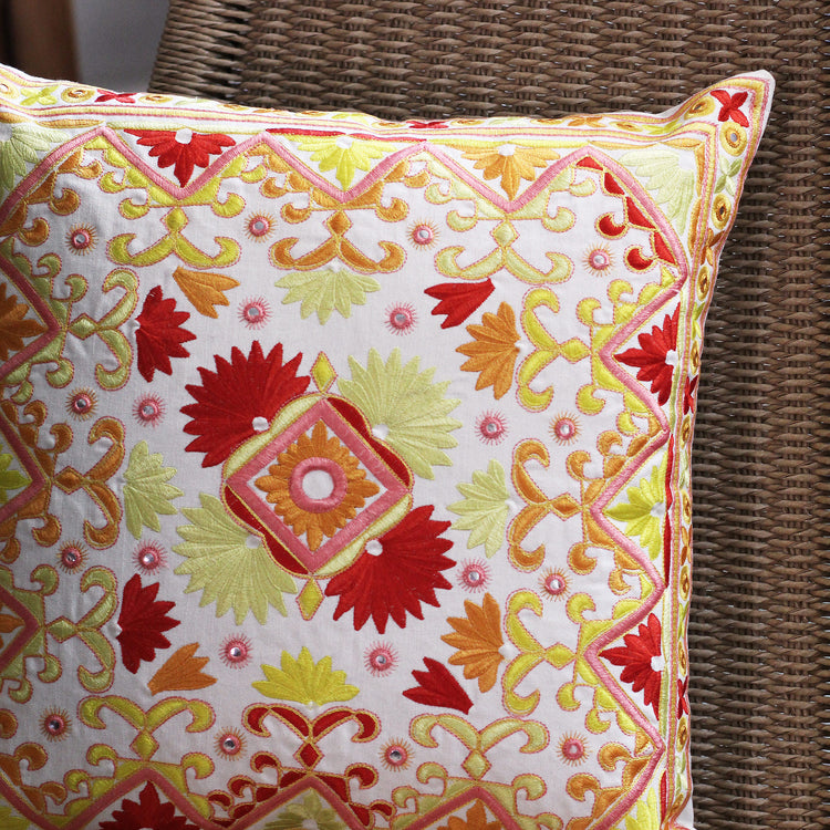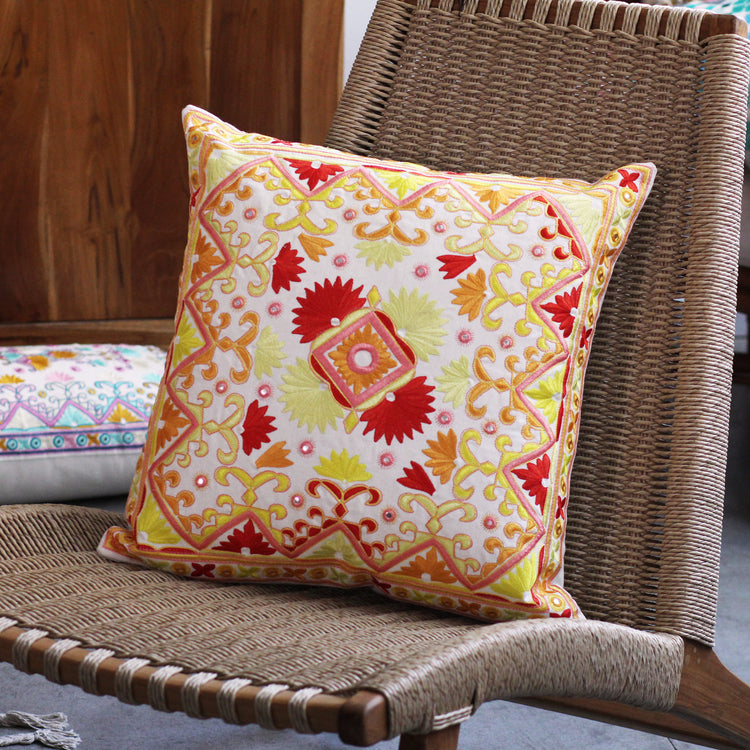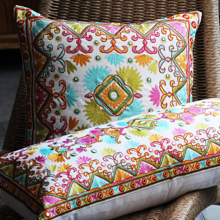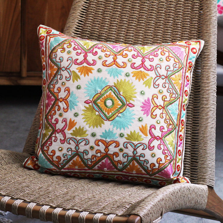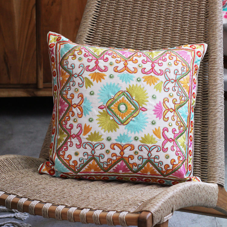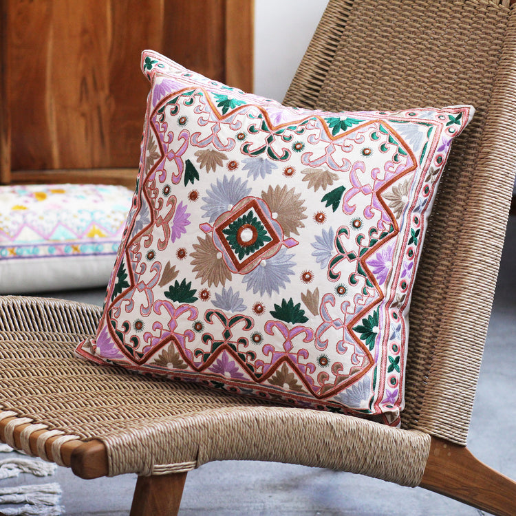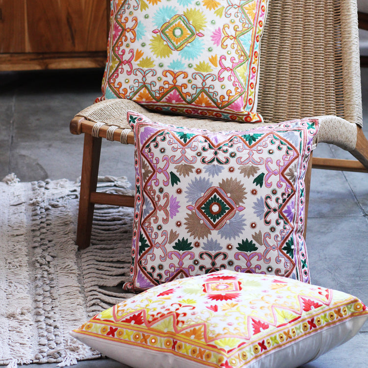 Produzida no Rajastão em 100% algodão, a Capa de Almofada Malay traz bordados manuais inspirados na tradição artesanal da região. Com padrões geométricos e florais, ela reflete a cultura local.