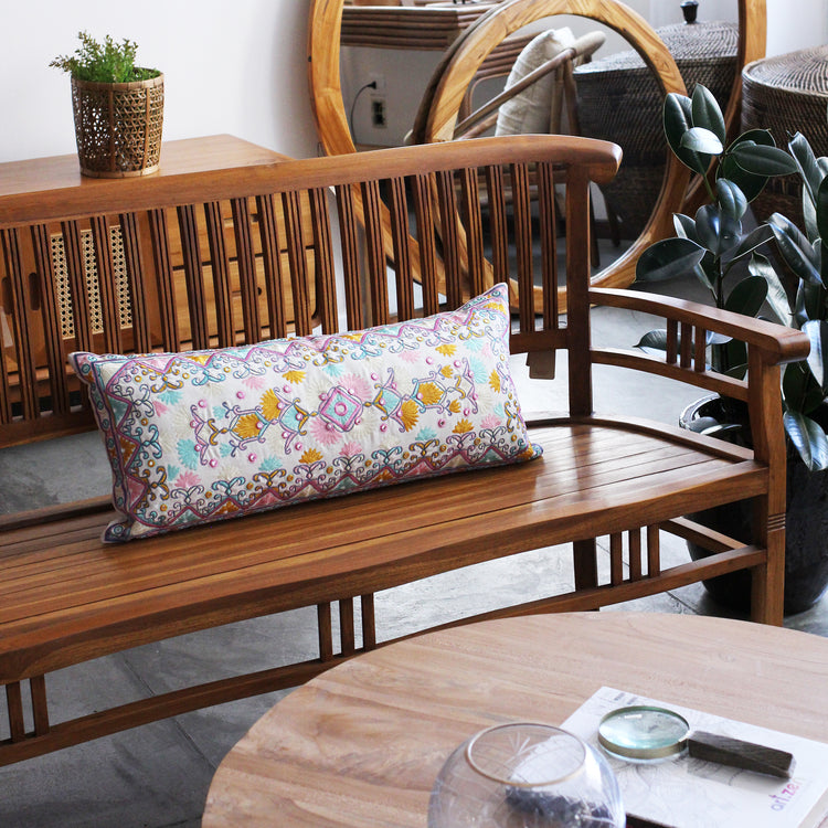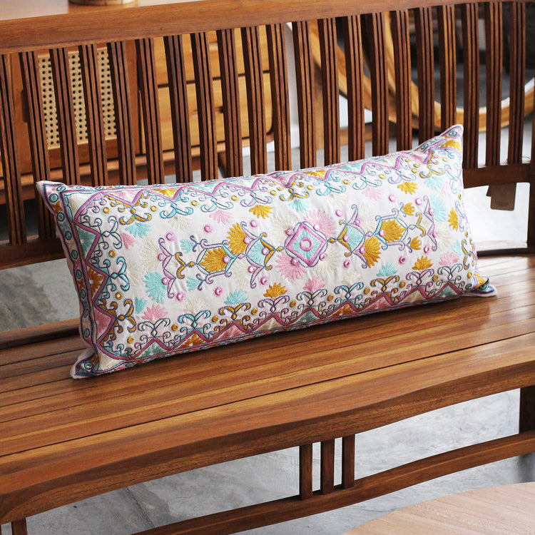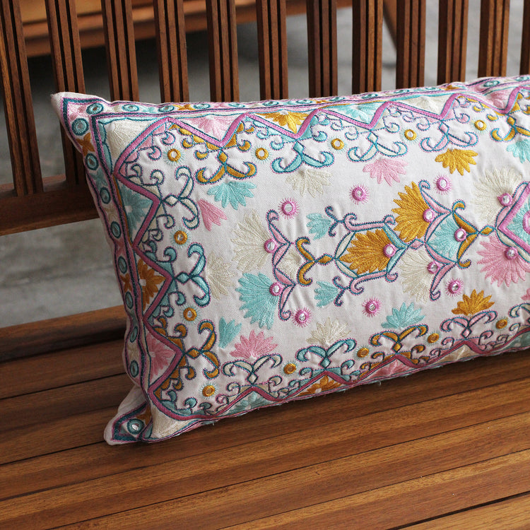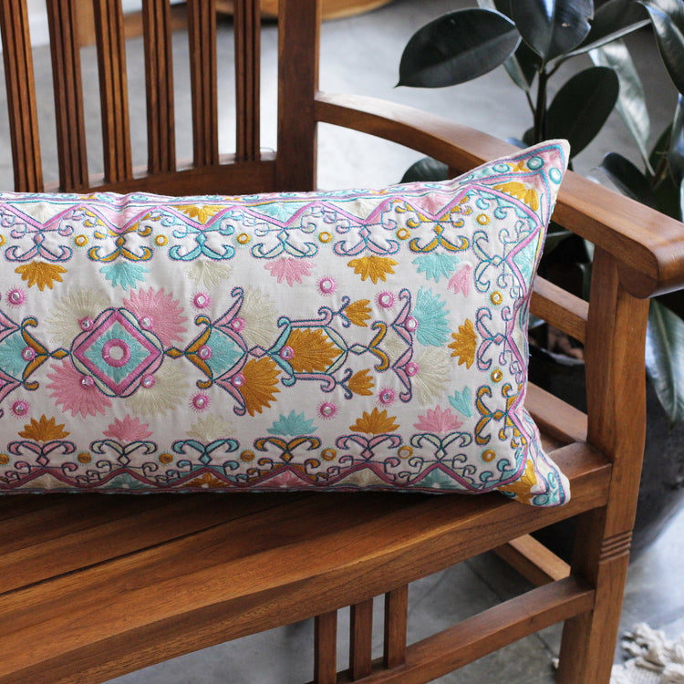 Produzida no Rajastão em 100% algodão, a Capa de Almofada Omkar Retangular combina bordados manuais delicados com padrões florais e geométricos em tons vibrantes. Inspirada no artesanato tradicional, é uma peça que traz cor e personalidade para decorações aconchegantes e cheias de vida.