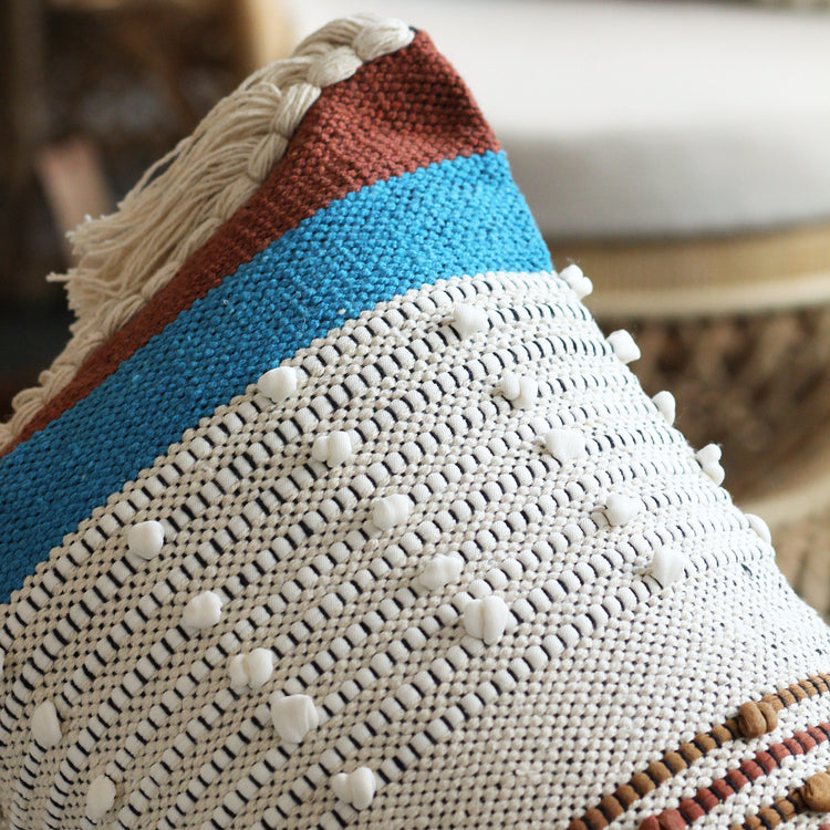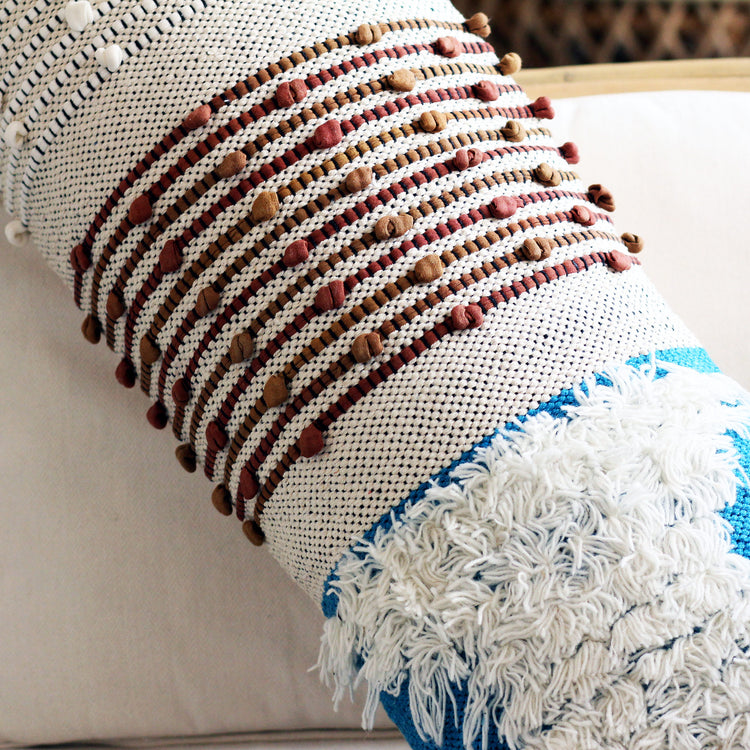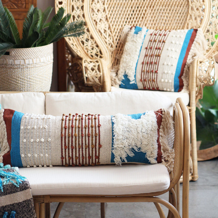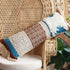 Capa de Almofada Rajhas Retangular produzida com uma mescla de 80% algodão e 20% lã com padronagens complexas de entrelaçamento, com toque, brilho e contraste superior.