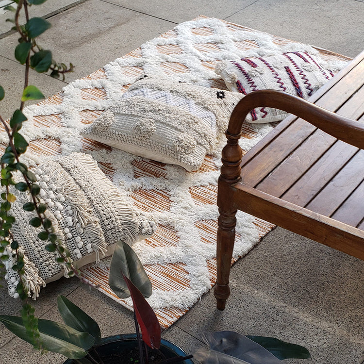 O tapete Akbar tem design originário do Rajastão Indiano. Suas linhas diagonais desenhadas em relevo de tufos de lã e algodão são atemporais. Um clássico que compõe bem em todos ambientes, seu resultado visual é sempre elegante e sóbrio.