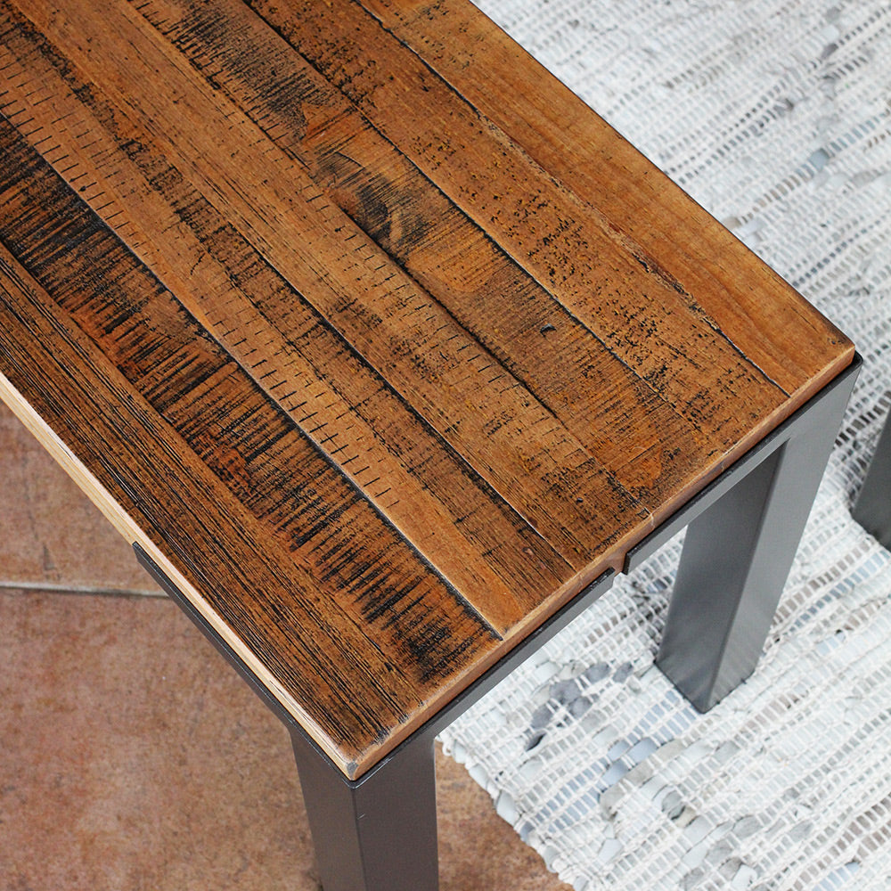 Banco Ventura, pés em aço carbono com pintura automotiva e tampo em madeira maciça.