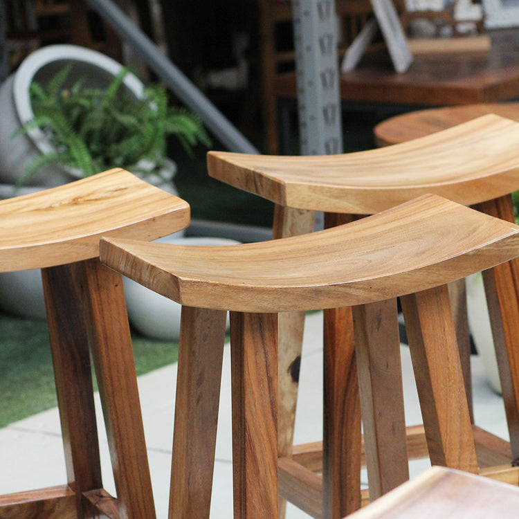 Com assento curvo e linhas bem orientais, o Banco Japa em madeira tamarindo é um clássico querido em nossa coleção e agora também na versão banqueta alta.