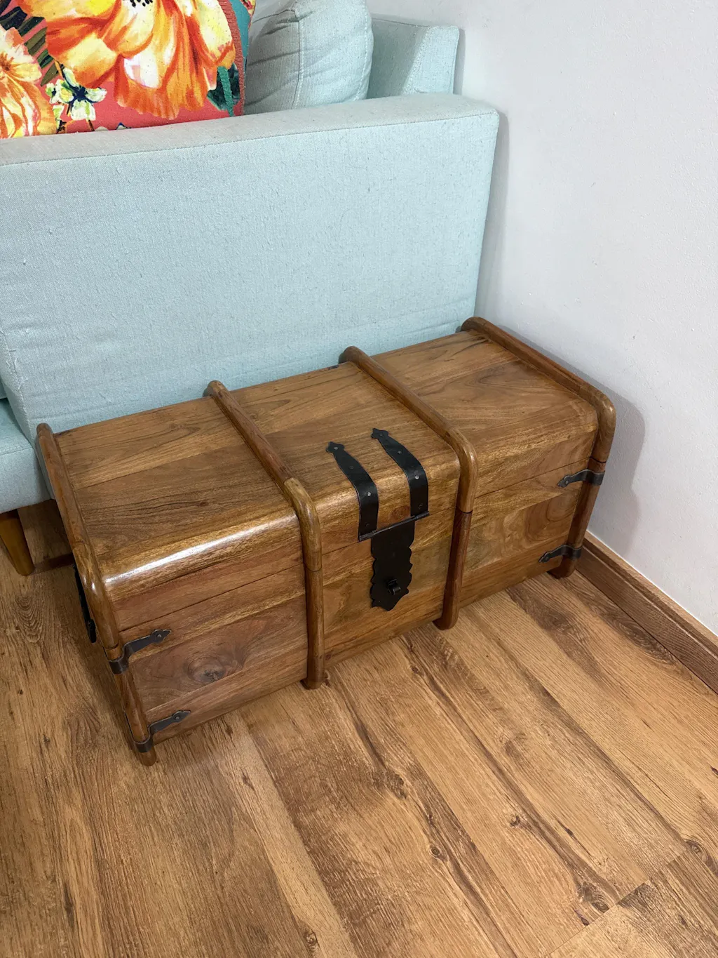 O baú é maravilhoso! Ficou lindo na minha sala ❤️ demora um tempo pra chegar por conta do tratamento da madeira mas vale muito a pena !