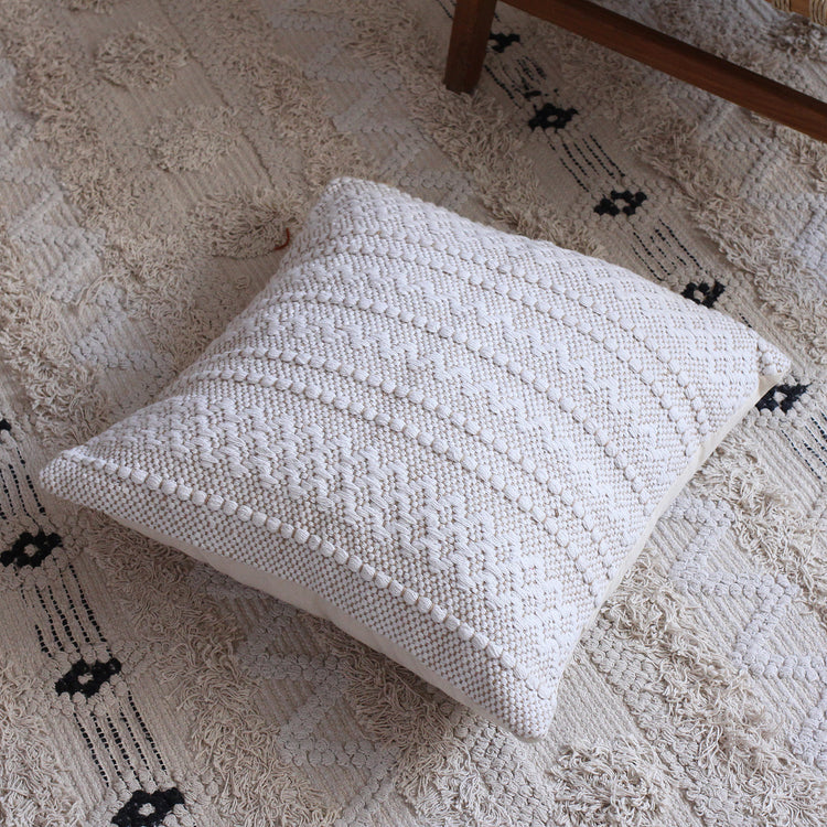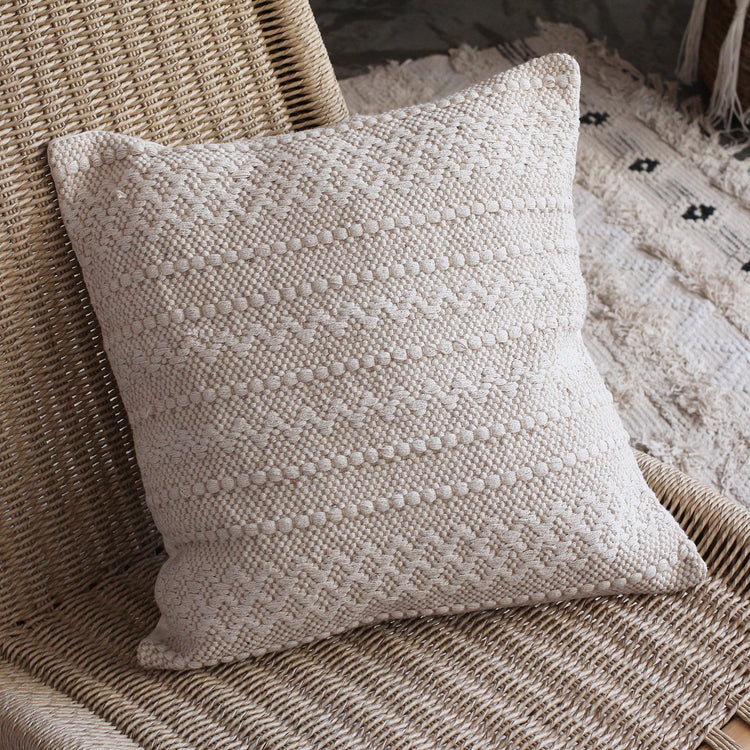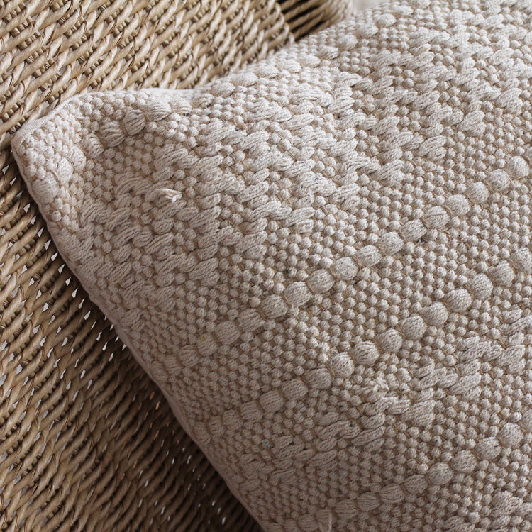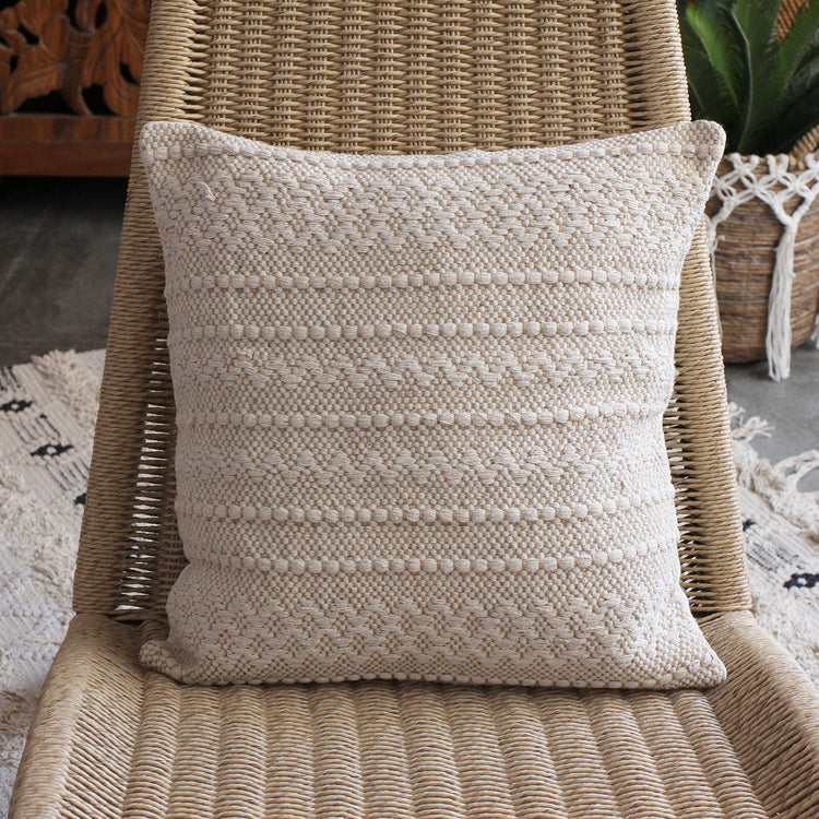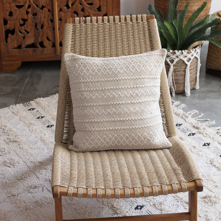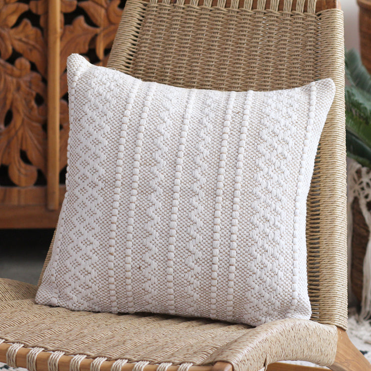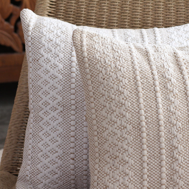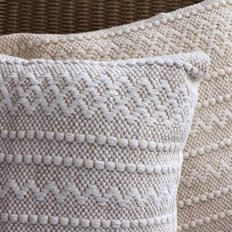 Capa de Almofada Juju produzida com uma mescla de 50% algodão e 50% juta.