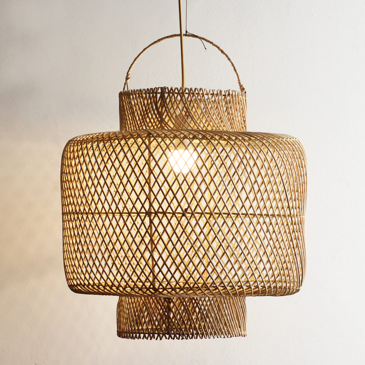 Luminária Pendente Aan, produzida artesanalmente na ilha de Bali, em bambu e Rattan.